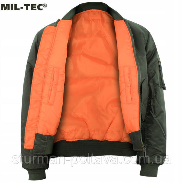 Це своєрідна льотна. куртка MA-1- оливкого кольори. Основний матеріал куртки - 100% нейлон. Підкладка куртки МА-1 виготовлена також з 100% нейлону,