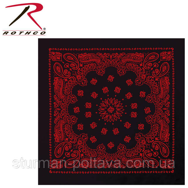 Бандана велика з класичним малюнком чорна з червоним 70х70 см Rothco США