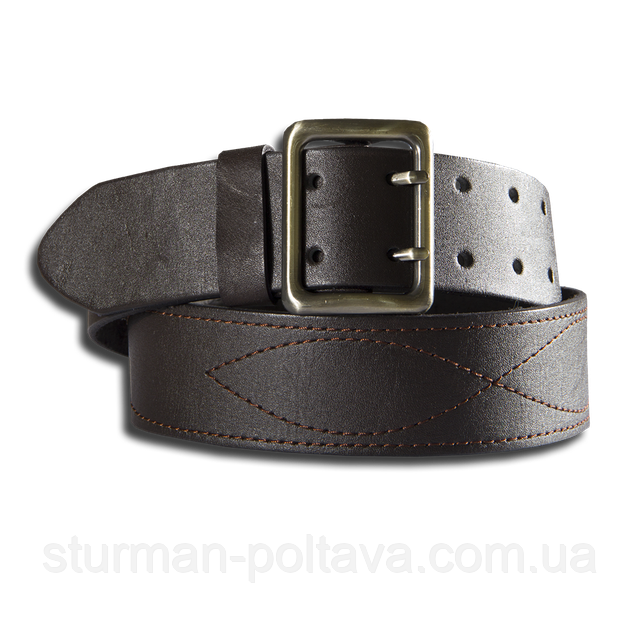 Пряжка ременя кріпиться трьома металевими заклепками, які втоплені в шкіру, що унеможливлює зачепи та гарантує міцність використання й довговічність виробу. Основна частина портупеї (2/3) прошита щільною ниткою у формі вісімки. Достатня кількість отворів дає змогу регулювати потрібний об'єм портупеї.