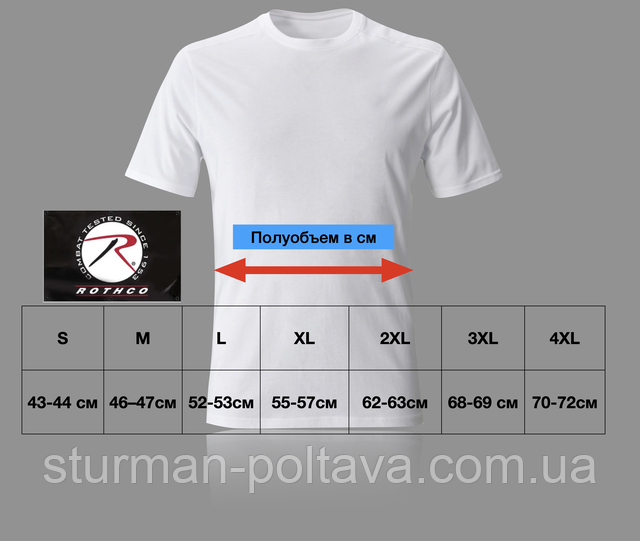 Полуобъем потрібно вимірювати в см і по середині футболки